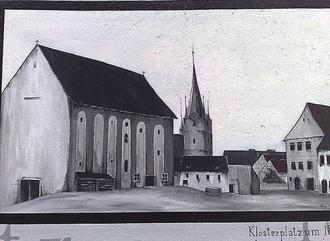 Der Klosterplatz mit der Klosterkirche vor dem Umbau. Darstellung nach einem Bild eines unbekannten Künstlers um 1800.