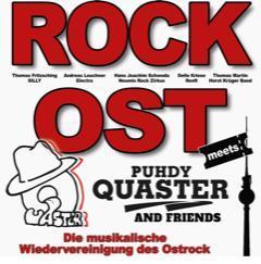 Wie der Name schon verrät, kommt es bei dieser Konzertproduktion auf der Bühne zur Vereinigung von Musikern, die in ihren jeweiligen Bands wesentlich das Gesicht der Rockmusik in der ehemaligen DDR geprägt haben. Da sind auf der einen Seite Quaster & Friends. Mit dabei sind sein ehemaliger Mitstreiter bei den Puhdys, Peter Rasym am Bass, weiterhin Stefan Schirrmacher, der früher bei Neumis Rockzirkus und aktuell mit Frank Schöbel als Gitarrist seine Spuren hinterlassen hat und sein Freund der Schatten, der für den Rhythmus sorgt. Dazu stoßen dann im 2. Teil der Veranstaltung die Musiker der Band Rock Ost. Hier finden wir Thomas Fritzsching, Gründer der Band Silly, Hans-Joachim Schweda, der bei Neumi den Bass bediente, Delle Kriese, der bei Renft trommelte und Thomas Martin, der bei Horst Krüger die Satzgesänge mit prägte. Erleben Sie mit den Musikern dieser Zeit eine Reise durch die Epochen des Ostrock. Angefangen von den schweren Anfängen des Rocks hierzulande, der „Monotonie des „Yeah, Yeah, Yeah“ bis zum eigenständigen Profil der Musik, die uns bewusst oder auch unbewusst prägte. Musik, die sich, wie wir heute sehen können, auch international nicht zu verstecken braucht.