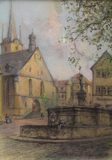 Die Sammlung des Museum642 - Pößnecker Stadtgeschichte ist im August 2023 um eine sehr fein ausgearbeitete Pastellzeichnung des Malers Franz Huth bereichert worden. Der 1876 als zweiter Sohn des Porzellanmalers Louis Huth (1843-1923) in Pößneck geborene Franz Huth erlernte in der väterlichen Werkstatt zunächst die Technik der Porzellan- und Glasmalerei, bevor er von 1911 bis 1918 in verschiedenen Städten Deutschlands als freischaffender Künstler tätig war. 1922 siedelte er nach Weimar über, wo er die folgenden 40 Jahre wirkte und 1970 im Alter von 93 Jahren in Pößneck verstarb.