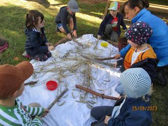 Die Kinder konnten all dies selbst ausprobieren. Die Naturparkmitarbeiter hatten Sense, Dreschflegel und Kornmühle dabei und somit die Prozesse anschaulich nachvollziehen. Zum Abschluss haben alle Kinder aus dem gemahlenen Korn kleine Apfeltaler gebacken. Den Teig zu kneten, zu formen und zu belegen nach eigenen Vorstellungen und Geschmacksrichtungen hat den Kindern viel Spaß gemacht.