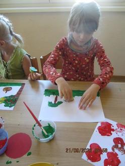 Auch bei uns hat der Herbst nun Einzug gehalten. In einer Themenwoche hat sich alles rund um den Apfel gedreht - Wie wird aus einem Kern ein Apfelbaum? Kann man mit Äpfeln Bilder malen? Wie wird Apfelmus hergestellt? Wie schmecken Apfelchips? Alle diese Fragen wurden durch verschiedene Projekte beantwortet.