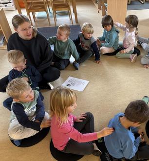 Unsere Vorschüler durften sich außerdem sportlich betätigen: In der Turnhalle wurde gerannt, gespielt und ordentlich getobt. Eine besondere Entspannungszeit erlebten die Kinder der kleinen Bärengruppe bei einer Kastanienmassage, die von einer herbstlichen Geschichte begleitet wurde - ein Erlebnis für alle Sinne.