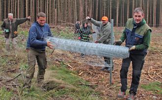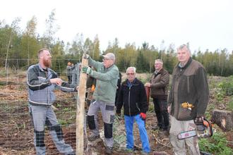 Zum ersten Arbeitseinsatz fern vom Stauseeufer kamen zwölf Mitglieder. Die Männer haben auf einer gerodeten Fläche der Evangelischen Landeskirche gearbeitet. Revierförster André Pasold hat den Einsatz organisiert und die notwendigen Materialen beschafft. Es wurden 430 Meter Zaun gebaut, um ein dreiviertel Hektar großes Stück Fläche zu umzäunen.