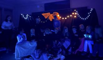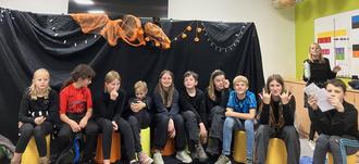 Denn drei Schülerinnen der Klasse 10 haben sich in diesem Schuljahr ein ganz besonderes Thema für ihre Projektarbeit ausgewählt. Anne-Sofie, Karla und Maya haben für Schüler und Schülerinnen der Klasse 5 und 6 eine Theater-IG ins Leben gerufen. In den letzten Wochen wurden Regeln erarbeitet, Warm-Up Übungen gemacht und ein Theaterstück für Eltern und Geschwister vorbereitet und geprobt. Es handelt sich um ein Stück über eine Halloweenparty in einer Schule, die anders als geplant verläuft. Als Besonderheit haben sich die drei für eine Aufführung mit Schwarzlicht entschieden.