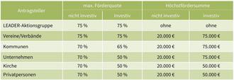 Voraussichtliche Förderquote und Höchstfördersummen: