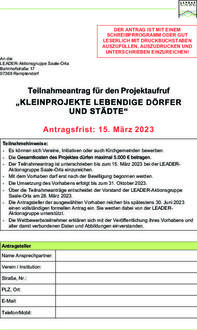 Anträge können Kommunen, Vereine, Unternehmen und Privatpersonen stellen. Sie sind unterschrieben im Original und digital bis zum 15. März 2023 bei der LEADER-Aktionsgruppe Saale-Orla einzureichen.