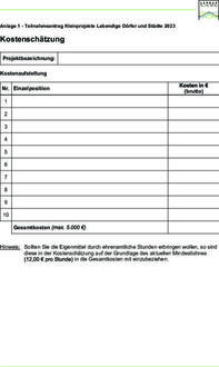 | - | Kleinprojekte haben Gesamtkosten von maximal 5.000 €. Im Rahmen dieses Aufrufes werden bis zu zehn Kleinprojekte gefördert. Für die erste Phase der Antragstellung bis zum 15. März 2023 reicht ein Teilnahmeantrag aus. |