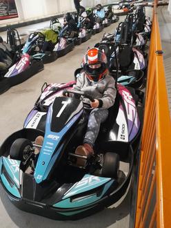 Kurz nach dem Mittag ging es dann los, mit dem LF die Fahrt nach Miesitz auf die Kartbahn. Dort angekommen stieg natürlich langsam die Spannung. Dann ging es endlich los. Ins Kart rein, Sitz einstellen, Gas, Bremse probieren und los. Es hat allen riesigen Spaß gemacht.