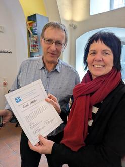 Bettina Schmidt, Geschäftsbereichsleiterin Eingliederungshilfen der Werkstätten Christopherushof, hat ihm für seine besondere, stets zuverlässige, freundliche und ausdauernde Arbeit und Unterstützung gedankt.