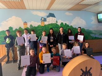 Die Klassenstufe 6 nahm weiterhin an der Schulkinowoche teil, das Neue Kino in Schleiz machte es möglich und zeigte „Hui Buh und das Schlossgespenst“- eine wunderbare Einstimmung auf die Lesenacht, die allen riesige Freude bereitete. Hieß es doch im Klassenraum die Isomatte auszurollen und in den Schlafsack zu kriechen… zugegeben: Gelesen wurde wenig, denn Eltern hatten ein Sportturnier vorbereitet, Pizza, Döner und Unmengen an Süßigkeiten wurden gegessen, so dass die eigentliche Idee ins Hintertreffen geriet.