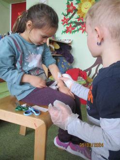 Die Vorschulkinder unter uns wollen mehr über das Thema erste Hilfe und Rettungskette erfahren. So entstand das neue Projekt „112 - Jeder kann ein Helfer sein“. Die Kinder lernten spielerisch wie sie bei einem Unfall helfen können, wie man einen Notruf absetzt und wie ein Verband angelegt wird. Das Üben und Lernen der stabilen Seitenlage bereitete den Wackelzähnen besonders viel Freude.