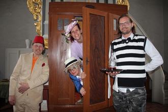 „Der Elgesbrunner Dramatrupp“ probt seit Wochen für die Aufführungen, hier im Bild Michael Koburger, Franziska Kaufmann, Jana Rother und Hendrik Röppischer.