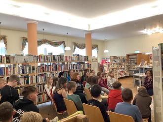 Als wir angekommen waren, liefen wir zur Bibliothek. Dort wurden wir von der Leiterin der Bibliothek begrüßt. Sie hat uns erklärt, wie die Bücher geordnet sind. Danach durften wir in der Bibliothek stöbern. Es gab wirklich viele Bücher. Dann haben wir zwei Arbeitsblätter bekommen. Beim ersten Arbeitsblatt sollten wir die Buchtitel nach dem Alphabet ordnen. Das zweite Arbeitsblatt war ein Kreuzworträtsel. Mit einer Fragerunde beendeten wir die Bibliothekserkundung. Vielen Dank an Frau Schöps für die für uns neue Erfahrung, eine Bibliothek einmal von innen zu sehen.