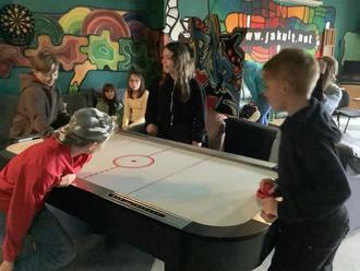 Als nächste Station besuchten wir das Jugendhaus am Sportplatz. Wir hatten eine langweilige Führung erwartet, aber wir waren überrascht, da es jede Menge Spiele, einen Billardtisch, einen Tischkicker und noch viel mehr gab.