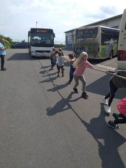 Nach der Begrüßung besuchten wir die vielen Stationen, an denen wir auch eine Menge dazulernen konnten. Beim Fahrradfahren merkten wir, dass wir bis zur Radfahrausbildung in Klasse 4 noch fleißig üben müssen. Bei der Busschule wiederholten wir das richtige Verhalten im Bus. Auch Feuerwehrautos, Polizeimotorräder und Krankenwagen standen zur Besichtigung bereit. Wer Glück hatte, durfte mit der Drehleiter nach oben fahren. Bei der Verkehrswacht puzzelten wir Verkehrsschilder aus Holz zusammen und versuchten uns an verschiedenen Geschicklichkeitsspielen. Unsere vierte Klasse belegte beim Busziehen den 2. Platz. Herzlichen Glückwunsch zu dieser tollen Leistung. Interessant war auch das plötzliche Abbremsen mit 10 km/h, bei dem die betroffene Person kräftig durchgeschüttelt wurde. Danach wusste jeder, wie wichtig das Anschnallen im Auto ist.