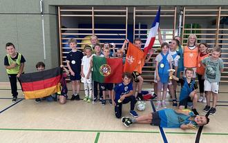 Passend zur EM begann die neue Woche mit Fußballbasteleien. Die Kinder lernten die verschiedenen Flaggen näher kennen und nutzten die Möglichkeit, Verschiedenes anzufertigen. Während die einen Flaggen ihrer Lieblingsländer malten, konstruierten andere Kinder Fußballspieler aus Pappe, mit denen sie eigene EM-Wettkämpfe gestalteten.