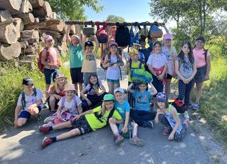 Zum Ferienfinale ging es in die nahegelegene Natur um dort gemeinsam Waldhäuschen zu bauen. Bei schönem Wetter entstand am vorletzten Ferientag eine behagliche Zeltstadt auf dem Schulgelände.