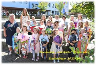Zweiundzwanzig schick gekleidete Schulanfänger kamen mit ihren Eltern, Geschwistern und einigen Gästen ziemlich aufgeregt in die Schule, um ihre Zuckertüte zu bekommen und endlich Schulkinder zu werden. Die neuen Schulranzen hatten sie gleich mitgebracht.