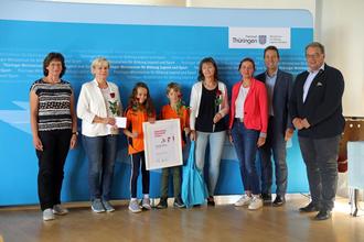 Ein weiteres Highlight war die Auszeichnung als „Bewegungsfördernde Schule“. Die Ehrung und der damit verbundenen Prämie von 1000 € wurde in Erfurt von den Schülersprechern, der Schulleiterin und der Fachschaft Sport mit großer Freude entgegengenommen.