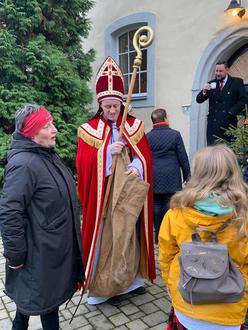 Der Heilige St. Nikolaus mischte sich unter die Besucher und hatte einen großen Sack mit süßen Leckereien dabei. Die Kinder trugen ihm Gedichte und Lieder vor und bekamen als Belohnung einen Beutel voller Naschereien.