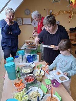 Die Bienchen haben zu einem Kneippnachmittag eingeladen. Mit Igelballmassagen, Kräuter- und Badesalz abfüllen, Armbädern, Quarkmasken und einem gesunden Buffett verbrachten alle einen entspannten Nachmittag.