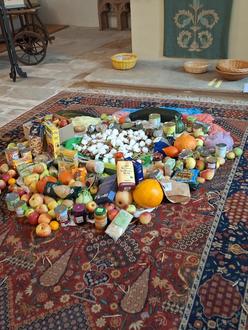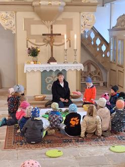 Dort feierten wir gemeinsam mit Pastorin Thalmann Erntedank. Nach einer spannenden Geschichte über Frederic, die Maus, legten die Kinder die mitgebrachten Gaben nieder.