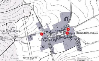 Die „Ergänzungssatzung“ besteht aus 3 Teilflächen (siehe rote Kreise im nachfolgenden Übersichtsplan) und betrifft die Flurstücke 1/27, 1/28, 232/10 und 233 der Gemarkung Herschdorf.