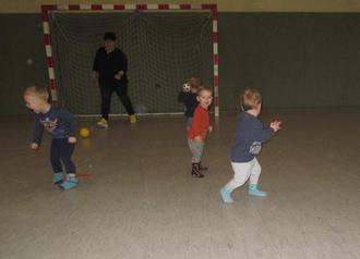 Die Kinder und Erzieherinnen der Bienchengruppe waren zum Oma-Opa-Nachmittag in der Turnhalle im Sportzentrum.