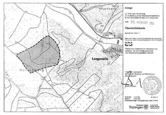 (1) Die örtliche Lage des in dieser Verordnung aufgehobenen Wasserschutzgebietes in der Gemarkung Hütten der Gemeinde Krölpa und in der Gemarkung Langenorla der Gemeinde Langenorla im Saale-Orla-Kreis ergibt sich aus der als Anlage zu dieser Verordnung veröffentlichten Übersichtskarte im Maßstab 1 : 10 000. Die Übersichtskarte ist Bestandteil dieser Verordnung.