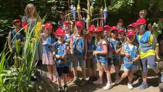 In der Bienchengruppe haben die Vorschulkinder einen Wunsch für ihren letzten Kindergartentag frei. So besuchten sie noch einmal gemeinsam einen Lieblingsplatz, z.B. bei einer Schatzsuche im Hain oder in Rockendorf den Spielplatz. Viel Spaß hatten sie zur Luftballon- und Verkleidungsparty.