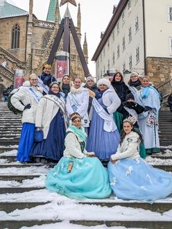 Am ersten Advent ging es für mich nach Erfurt auf dem Weihnachtsmarkt. Passend dazu herrschte ein tolles Winterwetter. Dort fand der traditionelle Stollenanschnitt statt. Herzlich empfangen wurden wir im Hofbräuhaus, wo wir uns stärken und aufwärmen konnten. Im Anschluss ging es zum Umzug durch die Erfurter Innenstadt auf einem Traktoranhänger. Von dort aus konnten wir an die Passanten leckeren Stollen verteilen. Wieder auf dem Domplatz angekommen, fand der traditionelle Stollenanschnitt statt. Anschließend konnten wir uns auf der Bühne vorstellen. Ein sehr schöner Tag endete.