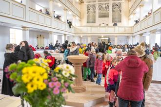 Eine Besonderheit des Gottesdienstes zum Jahresbeginn ist die Möglichkeit, sich persönlich segnen zu lassen. Wer möchte, dem wird unter Handauflegung Gottes Kraft und Liebe zugesprochen.