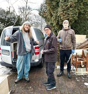 Da uns eine komplette Küche als Geschenk angeboten wurde, haben wir nicht lange gezögert und sofort das erste Wochenende genutzt, die Küche abzubauen und ins Kunsthaus zu bringen - ein großes Dankeschön an alle, die uns so schnell und tatkräftig unterstützt haben!
