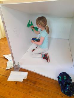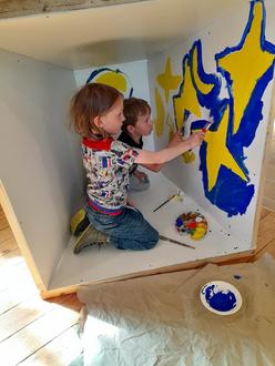 Sie sind auf jeden Fall so groß, dass Kinder darin spielen können. Und natürlich wird das Umgestalten schon eine schöne, spannende Aufgabe! Der Clou ist, dass die Kästen sogar einen Vorhang zum Auf-und Zuziehen haben!