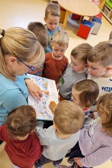 Eine gute halbe Stunde lauschten die kleinen Zuhörer, immer wieder traten die Kinder an das Buch heran und bestaunten die Igelbilder.