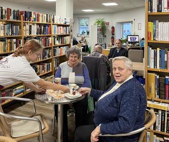Aber auch von Nichtlesern wird unsere Bücherei einmal im Monat als Café genutzt, wenn die Schüler der Schülerfirma „Café-Klatsch“ Gäste mit selbstgebackenem Kuchen und Kaffee bewirten.