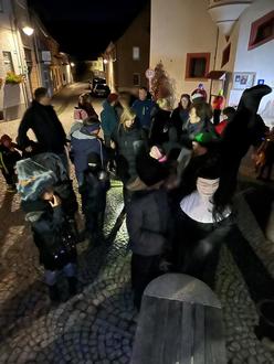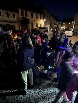 Begleitet von Taschenlampen und vielen lachenden Stimmen zog die bunte Gruppe Richtung Wald vorbei am Friedhof und zur Ullrichsruh. Der Friedhof war als Spukstation natürlich das Highlight der kleinen Geister. Auch viele Eltern begleiteten die Wanderung und sorgten für gute Stimmung und Sicherheit, denn es drohten einige Gefahren durch umliegende Bäume und abgestürzte Äste der letzten Tage.