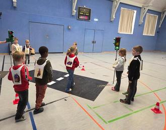 Die Schülerinnen und Schüler verwandelten sich in Autos, Motorräder oder Fußgänger und probierten in kleinen Szenen aus, wie man sich sicher im Straßenverkehr bewegt. Ob richtiges Überqueren der Straße, Warten an der Ampel oder Rücksicht auf andere Verkehrsteilnehmer - alles wurde spielerisch geübt und von ADACUS aufmerksam begleitet.