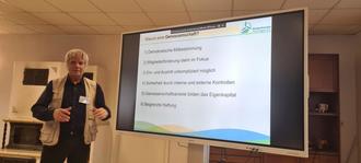 Die Aufgabe von Prof. Dr. Reinhard Guthke, Vorstand des Bürgerenergie Thüringen e.V. war es den Anwesenden das Thema der Energiegenossenschaften näher zu bringen. Er zeigte auf, dass in Deutschland schon rund 1.000 solcher Genossenschaften mit mehr als 220.000 Mitgliedern gibt. Die Investitionen dieser Genossenschaften bezifferte er auf mehr als 3,3 Mrd. €. Außerdem zeigte er die Vorteile einer Genossenschaft ggü. anderen Unternehmensformen auf und schilderte anhand aktueller Beispiele, wie sich Energiegenossenschaften in Thüringen engagieren. Sein praktischer Tipp: der Mix machts. Eine Genossenschaft dürfe sich nicht nur auf eine Art der Stromerzeugung konzentrieren, sondern müsse sich möglichst breit aufstellen, schon um saisonale Schwankungen bei Sonne und Wind auszugleichen. An die Vertreter der Kommunen gerichtet, verwies er darauf, dass die Versorgung mit Energie eine Pflichtaufgabe aus der Thüringer Kommunalordnung ist und, dass die Beteiligung von Kommunen an Bürgerenergiegesellschaften möglich sei.