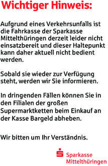 | Fahrplan Mobiler Geldautomat der Sparkasse Mittelthüringen | ||