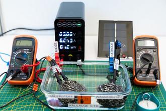 Die Idee war nun entstanden. Experimente zur Elektrolyse von Wasser zu machen. Unser Ziel sollte die Herstellung von Wasserstoff sein. Wir wollten herausfinden, ob man die notwendige Energie dazu auch aus einer Solarzelle gewinnen kann. Auch der verwendete Wasserstoff in Weimar ist durch den Einsatz von erneuerbarer Energie mit Photovoltaik hergestellt worden. Außerdem sollte ein Modell vom Wasserstoffbus mit funktionierender Brennstoffzelle entstehen, um einen Elektromotor anzutreiben.