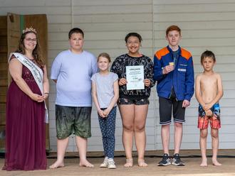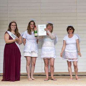 Kreativ einfallsreich waren alle Teams unterwegs, dennoch gab es am Ende noch eine Urkunde für das „Genialste Boot“ für das Boot der Pistenrowdys“, welches neben Michelle, Kim und Ricardo auch von unserer Kirschfestprinzessin Sarah gesteuert wurde. Hat sie im Boot noch fleißig gepaddelt, war Sarah anschließend während der Siegerehrung wieder im Ant der Kirschfestprinzessin hoheitlich unterwegs.