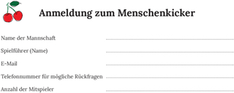 Zum 61. Kirschfest 2025 veranstalten wir das zweite Mal ein Menschenkicker-Turnier. Das Turnier findet am Samstag, den 12. Juli 2025, auf dem Festgelände Kapellenberg in Rastenberg statt.