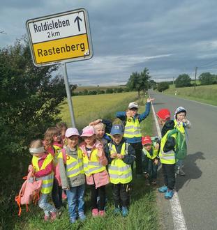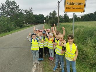 Dort warteten viele Höhepunkte und Überraschungen auf sie. Schon auf dem Weg nach Roldisleben beobachteten wir viele Tiere. Ein Feldhase begegnete uns und begleitete uns ein Stück des Weges.