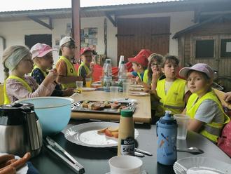 Für das leibliche Wohl hat Frau Weilepp mit Wiener Würstchen, belegten Brötchen, Obst- und Gemüseplatte gesorgt. Den Kindern hat es sehr gut geschmeckt und es war ein tolles Erlebnis auf dem Bauernhof.
