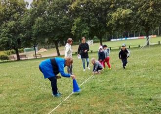 Danach durften wir an verschiedenen Stationen zeigen, wie stark, schnell und geschickt wir sind. Wir zeigten, wie gut wir springen und hüpfen können, wir rollten und drehten uns, wir haben uns im Tauziehen gemessen und viele von uns sind eine ganze Runde auf dem Sportplatz gelaufen.