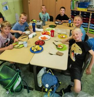 Auch in der ersten Ferienwoche war das Thema noch nicht vorbei: Im Hort organisierten die Kinder gemeinsam mit den Erziehern ein weiteres gesundes Frühstück. Bevor es an das Zubereiten ging, wurde zusammen eingekauft - so lernten die Kinder gleich, worauf man bei frischen Lebensmitteln achten sollte.