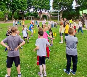 Allen Kindern war der Spaß am Fest sichtlich anzusehen. Auch Lehrkräfte sowie Helferinnen und Helfer waren begeistert vom reibungslosen Ablauf und der fröhlichen Stimmung. Da der Sportplatz derzeit umgebaut wird, fand das diesjährige Sportfest auf dem Schulhof und den angrenzenden Flächen statt - und zeigte eindrucksvoll, wie vielseitig ein alternatives Sportevent gestaltet sein kann. Ein großer Dank gilt dabei vor allem der Finneck-Schule „Maria Martha“, die uns mit drei Schülern und einer Lehrerin an diesem besonderen Tag unterstützt hat!