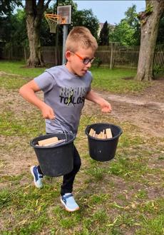 Statt der üblichen Disziplinen erwarteten die Kinder sportliche Herausforderungen wie Baumstammwerfen, Fassrollen, Sackhüpfen, Koffertragen und Steinstoßen - alles natürlich kindgerecht abgewandelt. Auch der Spaß kam nicht zu kurz: So mussten etwa zwei Kinder gemeinsam ein schweres Fass über eine Strecke rollen oder in traditioneller Manier einen „Baumstamm“ über eine Linie werfen.