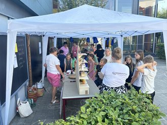 Die Tipps zur richtigen Zahnpflege, eine große Ernährungspyramide und ein Glücksrad nahmen die Kinder und die Lehrer dankend an, um noch mehr über das Thema Gesundheit und Ernährung zu erfahren.
